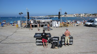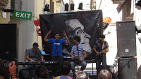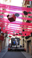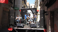 Arribem més puntuals que mai, a mig matí, ja que a la 1 tenim concert vermut i… no hi ha ningú al carrer. Bé, per ser precisos, sí que hi ha algú, en concret algunes velletes d’aquelles que s’entreveuen entranyables que ens estan “apretant” sobre la disbauxa de la nit anterior al carrer, el trontollar de vidres i sobre els que, pobres de nosaltres!, no hi tenim res a veure. Descarreguem i deixem les coses a l’escenari, el qual sembla que acompanyi la tranquilitat del carrer, perquè per no haver-hi no hi ha ni l’equip de so…