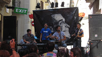 Ateneu La Torna -els que han organitzat la festa al carrer i que l’han rebatejat i decorat com a carrer Pepe Rubianes- no ha vingut. Imaginem el perquè… De sobte apareix algú que diu que abans d’anar a dormir passava per allà… i per sort, obre el local. Entre sidra i sidra ens van muntant l’equip de so i, més tard que aviat, però amb tota la calma del món i després d’haver repassat acústicament algunes cançons, comencem les proves de so.