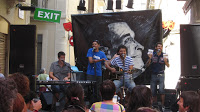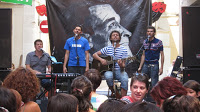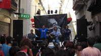 Després d’una entrevista per una ràdio comença l’actuació i, oh sorpresa!, després que el carrer s’hagi anat omplint de bon rotllo, ens n’adonem que cada vegada més la gent sap més cançons d’