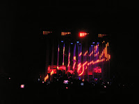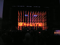 Però no ho ha estat, de bé, ni el lloc (l’espai del Fòrum on el van fer no mata gens, massa poc espai pels 20.000 que diuen que érem, poc ample, poc fons, el control crec que massa aprop de l’escenari -30 metres?- i cap pantalla darrera, i les del costat de l’escenari amb una visió deficient) ni el so. Com pot ser que des davant de control senti més al pesat del costat que la música? faltava potència? el tenien fluix expressament? En tot cas la mescla estava bé -quan la podia serntir, és clar…-. Cal dir que a causa de la vaga de transports els seus camions van arribar quan dues empreses de Barcelona ja havien muntat d’imprevist la llum -que van desmontar per muntar la seva pròpia- i el so -que sí que van mantenir perquè ja els va semblar bé i perquè segurament no tenien prou temps per muntar el seu-. Queda pendent tornar-los a veure en millors condicions. Esperarem, i tant!