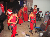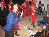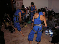 I el ritual abans del primer passi, maquillatge, vestir-se, ajustar boudriers, algú fent el tonto (en aquest cas en Santiago…). Primera actuació i primer moment del cigarro post-actuació (quin estrés…).