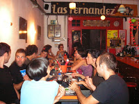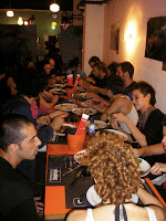Repetim els preparatius i segona actuació, amb fotos de l’espai il.luminat amb la gent atipant-se, en Zésar i en Pico tocant i les noies penjades amunt i avall per la paret.