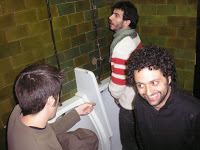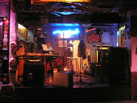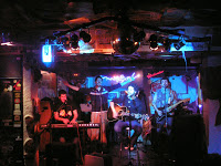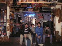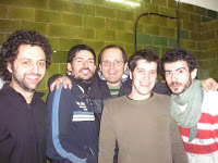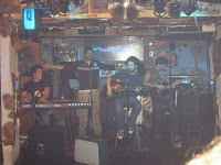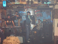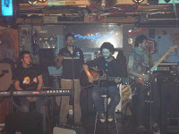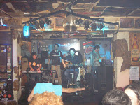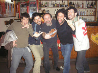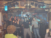 I dos moments bojos més de la nit: l’aturada a mig bolo per fer la foto de grup estàtica que ja s’està instaurant als bolos i l’intent d’escanyament d’en Llorenç a en Dani mentres dues mosses pujaven a l’escenari (de fet crec que a elles els era igual el grup, anaven prou contentes…).