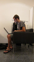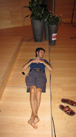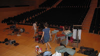 Anem entrant els instruments i ens trobem amb la grandesa de la Sala Simfònica, ui ui ui, quins nervis!! Però hi ha qui es relaxa al mateix terra de l’escenari, d’això se’n diu integració en el medi.