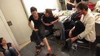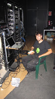 Proves de so, esmorzar, temps de camerino, vestuari i maquillatge -amb en Casi de Road Manager i en Tete que avui treballa a l’Auditori- i cap a tocar a una estoneta amb unes 800 persones de públic. En Dome se’n surt prou bé de presentar en castellà (que acento a catalán de pueblo tan bonito que tienes hijo) i també de fer alguna que altra broma sobre la música de la