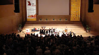 JAEM, Jornades per a l’Aprenentatge i l’Ensenyament de les Matemàtiques. Mitja hora d’actuació al migdia, proves de so fins a les 11, d’aquí ve que hàgim matinat.
