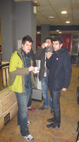 21:45 Entrem a la pizzeria on teníem taula guardada a les 21:15 (ara ja podeu entendre la pressió que m’exercia en Quim). No hem ni començat a sopar que alguna fan descobreix, via bluetooth, el mòbil d’en Joan Enric i li envia un missatge de guassa.