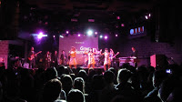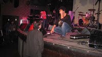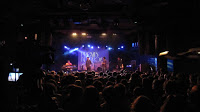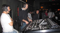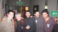 Vaig estar relativament poc temps amb ells, la premsa els va segrestar quasi des de que vam posar els peus a la Bikini per fer les proves de so a les 5 de la tarda fins moments abans de sortir a l’escenari. Després de les proves, amb en Quim “l’home que treballa fent d’agenda” i en Tete “l’home que va tornar a fer de tècnic de monitors”, ens vam anar a refugiar i a passar les hores tot fent algunes birres i menjant croissants (gran combinació!) a un bar de la zona.