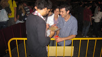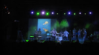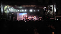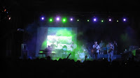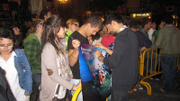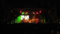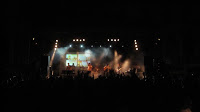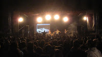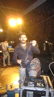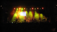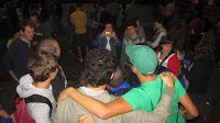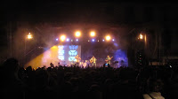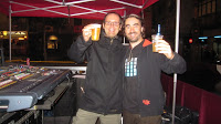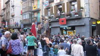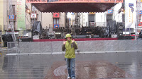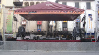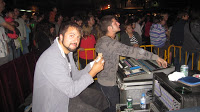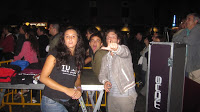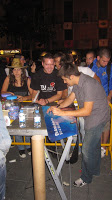 Anem a sopar al camerino i esperem l’hora de començar. Ara no plou però hi ha un ambient fresquet. De mica en mica es va omplint la plaça. Avui és la primera nit de les festes i la gent que ve ho fa amb moltes ganes de passar-s’ho bé. L’Eduard estrena una webcam amb la que vol captar l’ambient de la plaça i projectar-lo a la pantalla. Mentrestant l’Albert i jo ens fem alguna foto amb alguna cervesa a la mà, un clàssic de les nostres trobades a Olot.