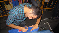 Comença l’actuació. En Sidro i l’Andrés -trombó i trompeta-, a la que tenen un moment de pausa venen fins a on hi ha la Montse “merch” per sentir alguna cançó des de baix. No me’n dono ni compte i ja som als bisos. Buf, que ràpid que m’ha passat el bolo. Tantes hores per fer les proves de so i ara tot se’m fa curt. Final del bolo, signatures, petons i abraçades. Recollir i cap dormir, demà, Cambrils.