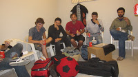 Migdia. Els Amics estan citats a TV3 per gravar la seva aparició al programa La Nit 10 que s’emetrà l’endemà. S’ha dormit més aviat poquet després del bolo d’ahir a Tortosa i el cansament es fa palès.