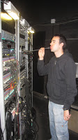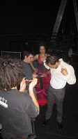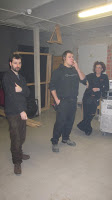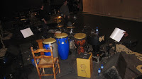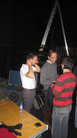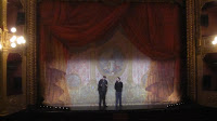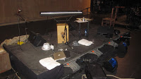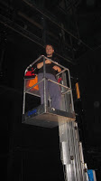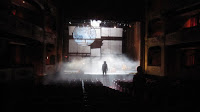 Darreres proves de llum i fum, espiant pel forat que hi ha al teló mentre la fent va omplint el teatre i fotos de les funcions.