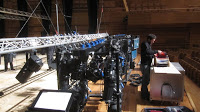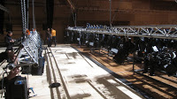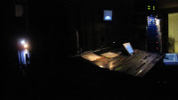 Parèntesi a les vacances. Bolo d’Autorretrato –Compañía María Pagés– a Valladolid, al Centro Cultural Miguel Delibes, amb un personal en general molt maco i treballador. Pim pam pum i cap a casa. Dilluns hi arribàvem, dimarts fèiem el muntatge, dimecres les proves de so, assaig general i funció i ahir tornava cap a Girona. Una de les pitjors situacions del control de monitors que he tingut mai. A l’escenari, entre cametes no hi cabia, no hi havia espai. Tal i com es veu a les fotos, estava tancat a un lateral de l’escenari, amb una mínima visibilitat del mateix. Tanmateix tenia una pantalla on podia anar seguint el que passava. I també quedava bastant aïllat respecte el so que sortia dels monitors. Havia d’anar fent petites excursions entre cametes a veure què passava. No va anar del tot bé però tampoc malament del tot.