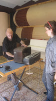 Aquests dies han vingut a col.laborar en Xevi -alguna percussió-, la Cristina -violoncel- i l’Enric -baix-. Bé, en Jaume ha agafat l’acordió però em penso que no ha gosat ni preguntar-ho si el deixàvem gravar alguna coseta…