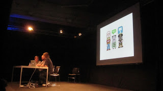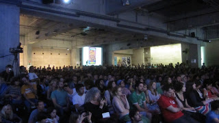 Sessions a l’espai Roots, on estavem en Dani, en Gerard -que anava canviant d’espais- i jo. Bàsicament les sessions consistien en xerrades -agrupades en les categories motion, gràfic, interactiu, teòric, tipografia, il.lustració i agència- on dissenyadors explicaven la seva història professional, mostraven treballs, en alguns casos n’explicaven tot el procés, etc… Algunes de les persones que han passat per aquí són autèntics gurus del disseny a nivell mundial. En algunes presentacions he flipat bastant. Buf, hi havia coses al.lucinants! Hem viscut un ambient molt cool i hem constatat com en aquest món del disseny no hi ha cap res que no sigui Apple.