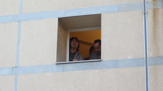 Abans de la funció és el moment de sortir una estoneta a l’exterior. Una esglèsia ben a tocar el teatre, les finestres dels camerinos, músics i bailaores preparant-se, moments d’intimitat amb la finestra oberta…