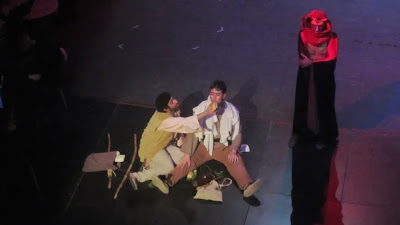 Com l’any passat i per Nord Produccions he anat a sonoritzar els Pastorets que des fa un munt d’anys fa el Grup de Teatre de Roses. Enguany només hi he pogut anar als dos darrers dies per solapament amb altres bolos. Em vaig perdre el dia de muntatge i assaig general amb músics i actors i la primera funció. Per sort l’any passat vaig marcar a consciència el guió, un totxo d’unes dues-centes pàgines, amb anotacions i marques per saber quan hi havia música, quan tracks d’àudio (que si els trons, que si el llop). I per sort, també he comptat amb els inestimables comentaris i missatges d’alerta d’en Rafel, el tècnic del teatre, que feia les llums al meu costat, colze amb colze, allà a dalt de tot al control, que més aviat semblava l’infern de la calor que hi fa, i és que tot l’aire calent de la calefacció puja, sabeu?