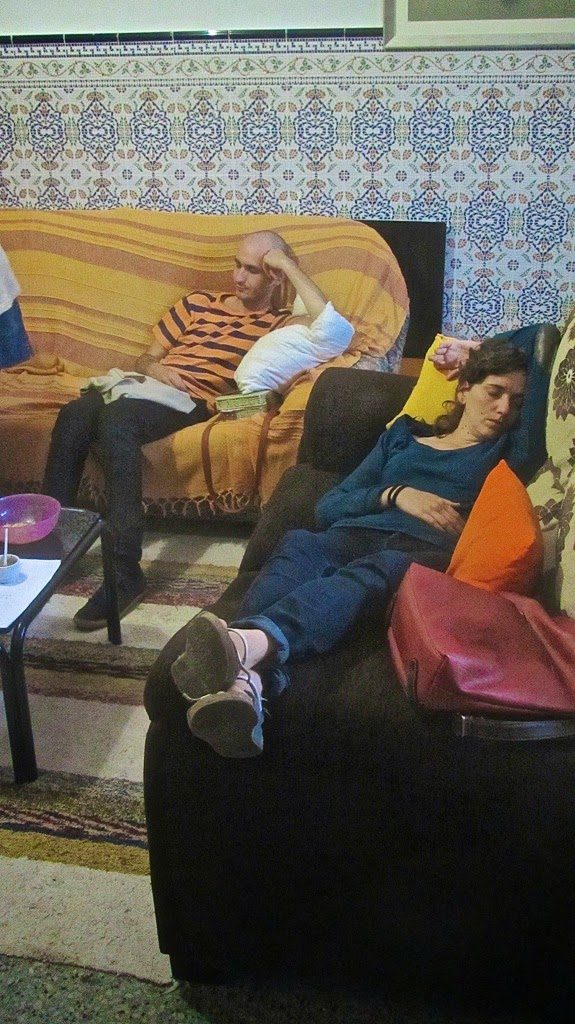 Mentres tot això passava, l’ambient a l’interior de la casa que s’havia habilitat com a zona d’hospitalitat era un altre, tot i que la preocupació per si s’havien malmès insturments, els equips, etc i què passaria amb les actuacions surava per allà. Bé, alguns aprofitaven per descansar…