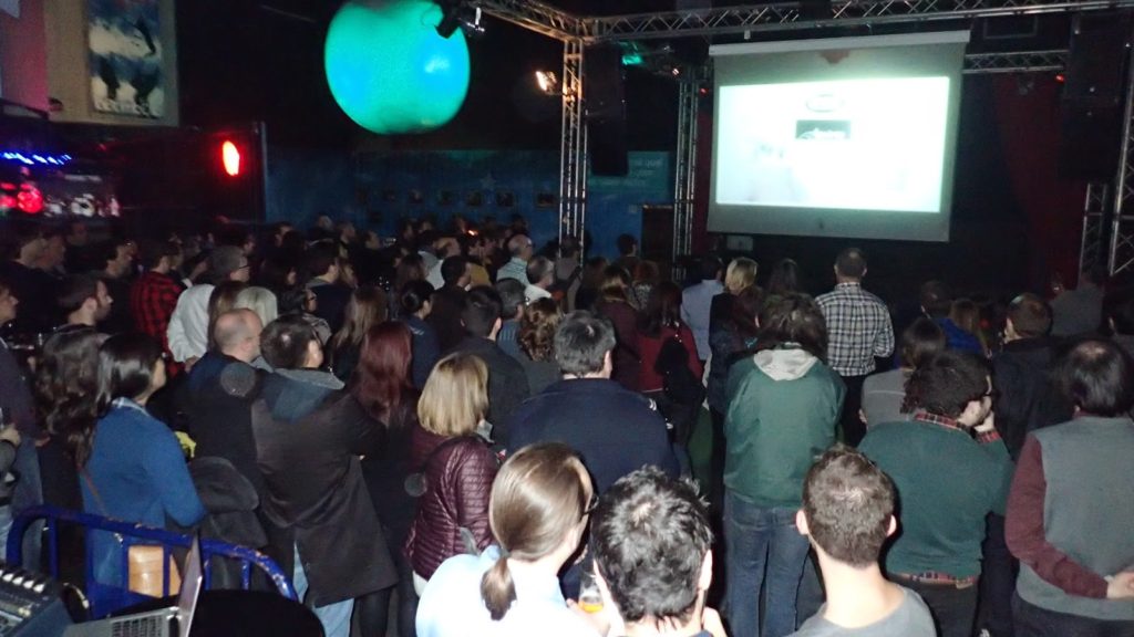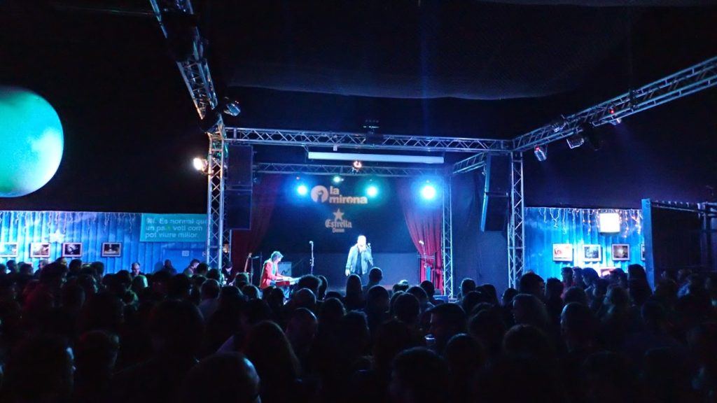 La festa va començar a la Bombolla, amb la projecció de vídeos curts amb parlaments i amb un repàs de la història d’RGB. Després va venir el piscolabis. Sense cap mena de dubte va ser la nit de les converses interrompudes i les salutacions continuades. Quanta gent del “mundillo” que hi havia! Músics, mànagers, tècnics, etc… Era impossible fer una passa sense trobar-se algú conegut. I quanta gent que feia temps que no veia! Va estar molt bé, va ser una gran nit.