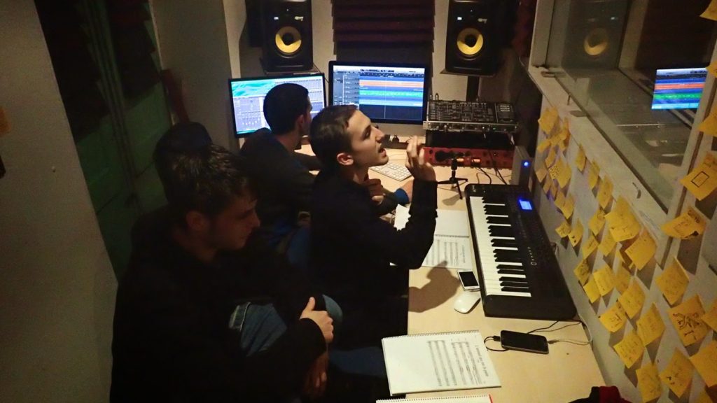 Aquestes són les fotos d’aquests darrers quinze dies en els que hem acabat les veus i els coros, hem gravat els vents i hem tingut les col·laboracions d’en Darío i en Fred a les guitarres, en Joan a la trompeta, en Sergi al saxo i en Daniel en una intervenció de veu d’un tema. Hi ha més col·laboradors, però ja els desvetllarem més endavant…