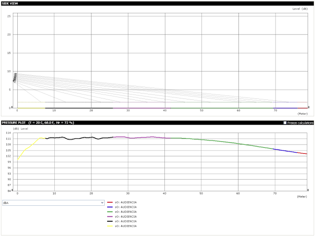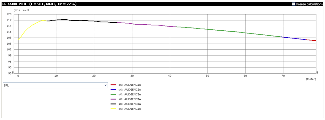 El tècnic del grup que més amunt va estar va treballar ho va fer al voltant dels 107dBA amb algun pic a 110dBA. L’única part del sistema que va “clipar” van ser els subgreus. La resta en cap moment va “clipar”. Ni els aguts, ni els mitjos ni els greus. Podríem entrar en discutir ratios de subgreus tenint en compte que també teníem altaveus de greus, però ara mateix fins que no treballi amb aquest equip amb més configuracions i dividint-lo en dos no tindré prou informació al respecte. Personalment em va semblar que hi havia suficient sub. Però de sub mai n’acostuma a sobrar quan tens més caixes de subgreus… És una qüestió d’ajustar bé els equips i mesclar millor. Llevat de quan tens música electrònica, que sempre en vols més de subgreus!