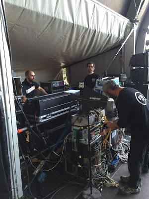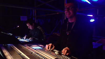 S’havia establert que es treballaria a 103dBA d’SPL (sound preassure level), tot i que no vaig inserir el limitador CESVA a la taula, una Yamaha CL5. Però sí que teníem el sonòmetre marcant tota l’estona i enregistrant les dades per si feien falta. Per als que no sou tècnics, per fer comparacions de nivells, en festivals destinats a mainada s’acostuma treballar (o s’hauria) entre 90 i 93 dBA, el que suposa, entre 3 i 4 vegades la meitat de volum que a 103dBA.