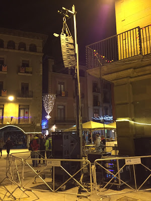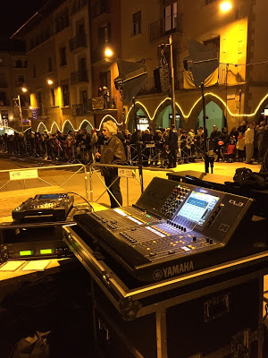 Deuen ser els Reis que fan màgia per tal que es pugui “cobrir” la plaça amb dues torres Gennies a 7 metres d’alçada, amb 5 Nexo STM M28 i 2 S118 per costat, amb el volum en aquell punt que l’equip es comença a autoprotegir.  Veu i música de fons, encara! Visca els tres Reis!