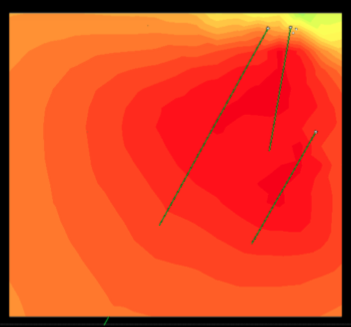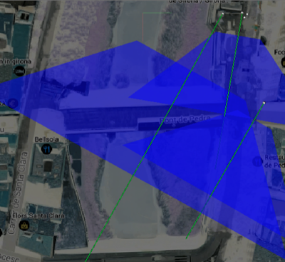 Plànol de cobertura de les tres torres amb GEO S12 i mapa de pressió de les mateixes.