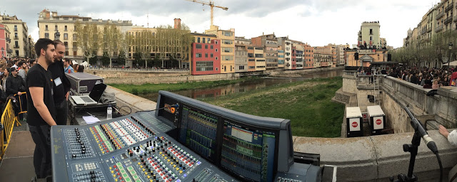 I tanmateix, i desdramatitzant una mica, crec que puc afirmar que pràcticament 2/3 de les 8000 persones que van assistir al concert gratuït ho van sentir en unes condicions dignes. Des del control, tot fent l’assistència al tècnic dels LOL amb la Midas Pro6, anava rebent missatges d’amics que voltaven per allà que m’anaven dient a on sonava bé i a on sonava malament. Vaig poder fer un bon mapping de la qualitat sonora! I quadrava bastant amb el disseny que havia fet. L’espai a cobrir, trançant un quadrat amb els extrems de cobertura, és superior a la zona de barraques de les festes de Girona, però amb molt menys equip.