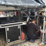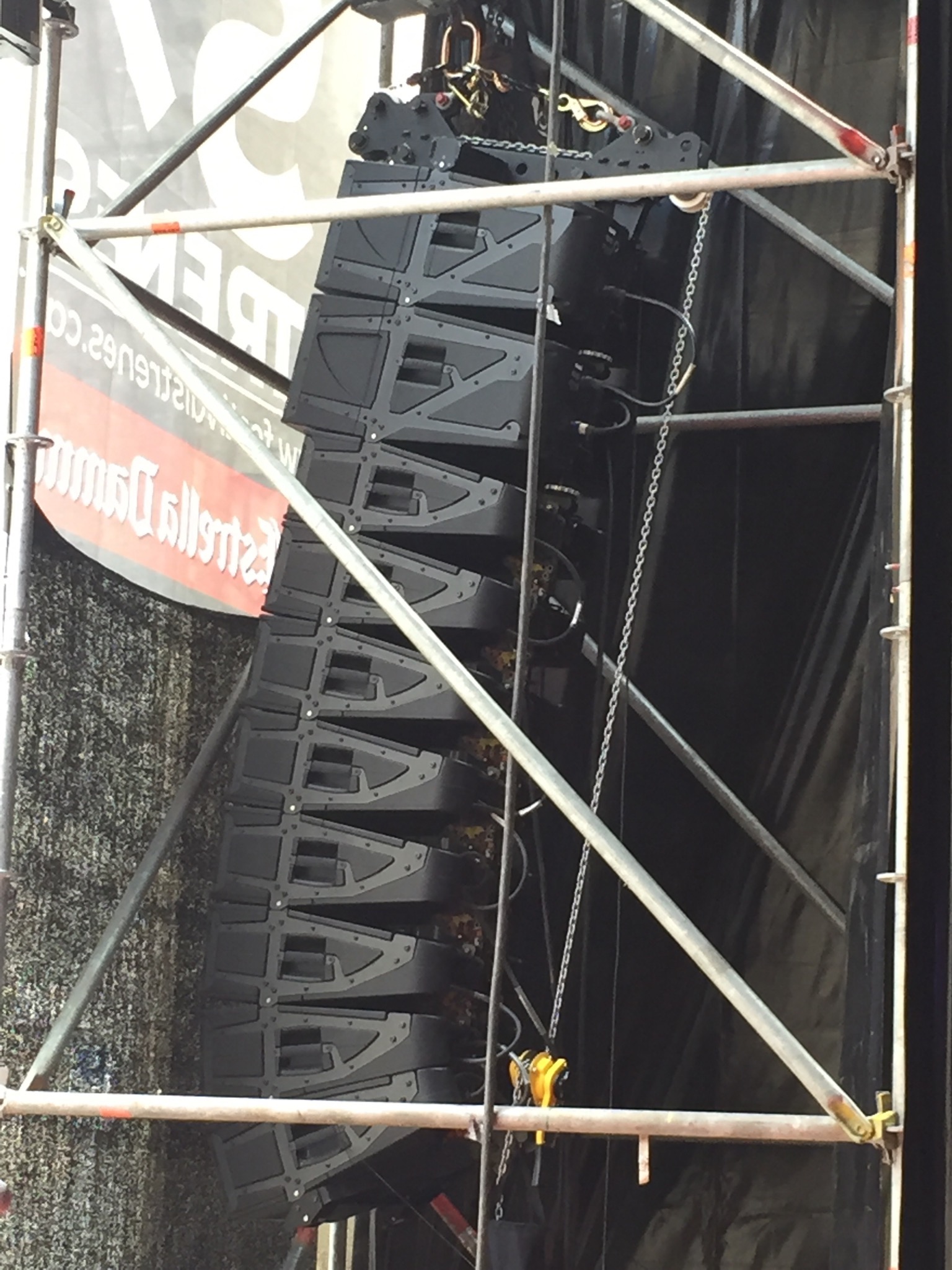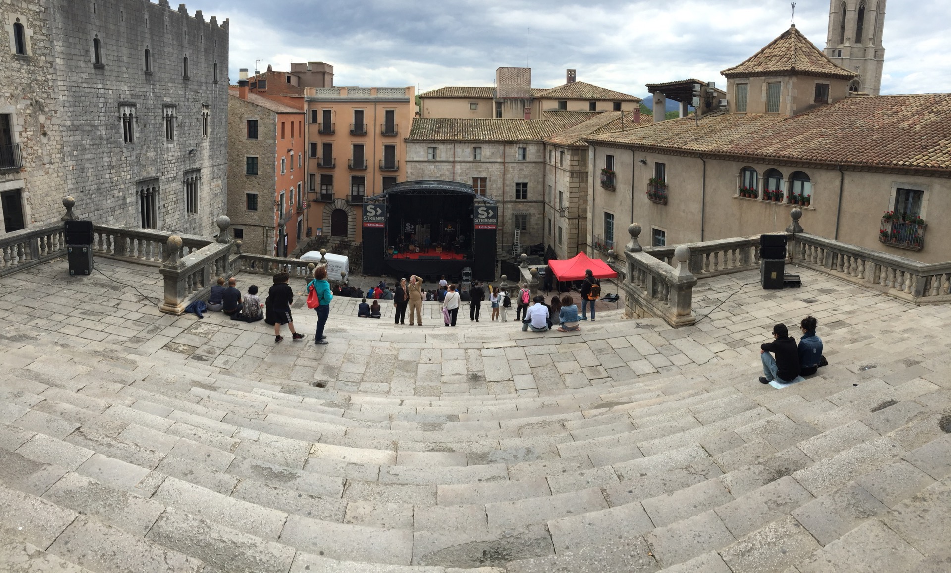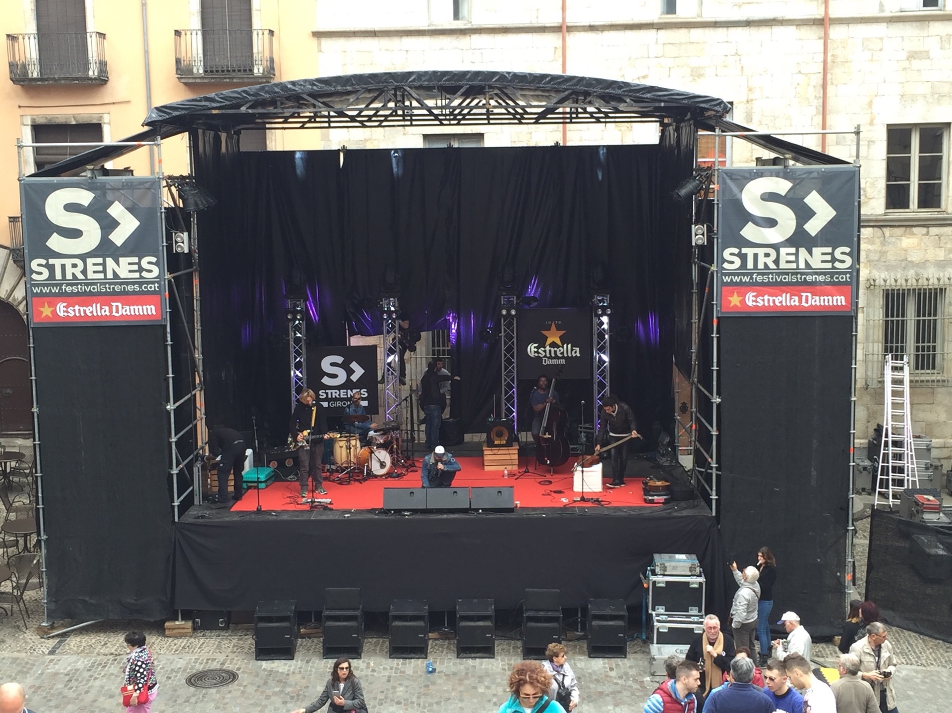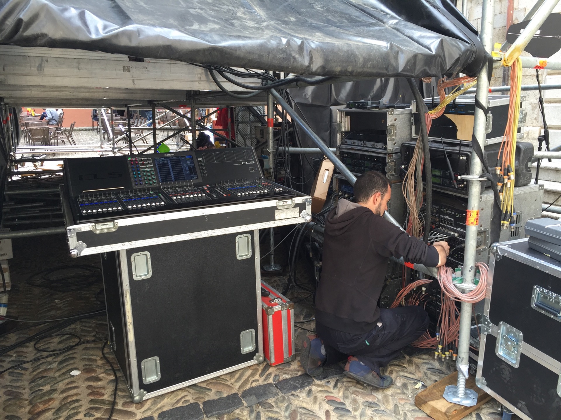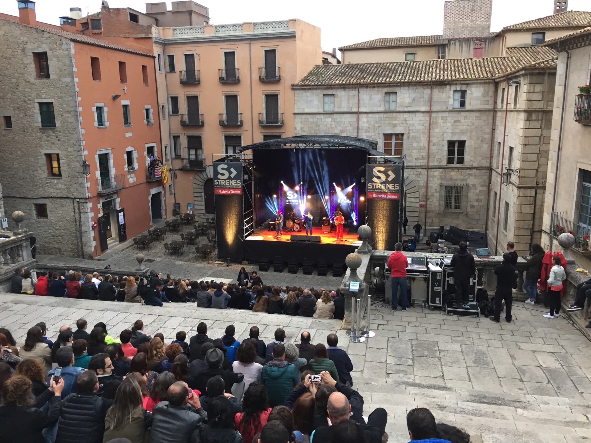 Enguany he fet dos bolos al Festival Strenes, el d’inauguració amb Love Of Lesbian i el de clausura amb Macaco.  Bé, en aquest darrer no formava part de la plantilla de tècnics de BTM que feien el bolo, però hi vaig acabar passant quasi tot el dia.  Aquella setmana havíem fet formació tècnica i disseny de sistemes i un dels exercicis que vaig plantejar era el disseny de l’equip que es muntava a les escales de la Catedral.  I em feia gràcia anar a comprovar com anava el muntatge i veure, sobre el terreny, com funcionava el disseny que havíem fet amb l’NS1, el programa de predicció acústica de NEXO.  I que bé quan veus que tot quadra!  La cobertura de l’espai va ser òptima i la pressió sonora esperada també.