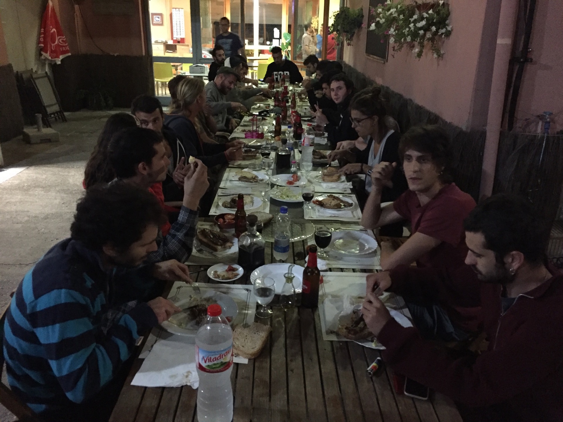 Només d’arribar al poble ja em ve bon rotllo. M’agrada fer bolos per aquí a la Garrotxa! Tocar per aquí és jugar a casa. Els de Clip cobreixen l’acte (gràcies nanos!). Abans de començar les proves la Digico SD9 fa el tonto -senyals d’errors constants a la pantalla- i l’hem de reiniciar… El corrent inestable? Qui ho sap! Ha aguantat proves i bolo sense problemes al final. Zero canguelis. Avui no han muntat el d&b (ooooooooooh!), va, ho farem amb el Martin… però no és el mateix, he he! Compartim sopar i escenari amb La Sra. Tomasa. L’Albert ens retrata per tots costats durant l’actuació. Menys a mi, que no ha tingut temps de passar pel control, ha ha ha ha!! Però jo sí que l’he caçat! Amb carinyo!