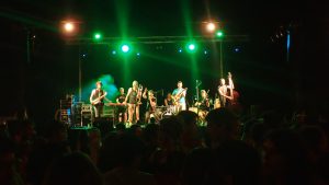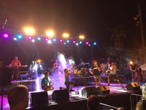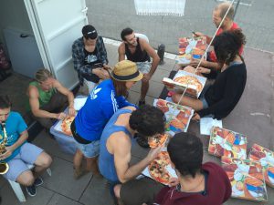 Compartim escenari amb Doctor Prats. Han de provar abans que nosaltres i sembla que arriben tard. Cap problema, els horaris són prou amples com per tenir marge. Avui mesclaré amb una Yamaha CL5 i amb el LA Kara d’Ancar i hi ha taula de monitors, una Midas M32R No han tingut precisament el seu millor dia, a tots ens ha passat alguna vegada. No té més importància, ja que el bolo ha començat puntual. Hi ha hagut problemes amb línies i amb la configuració dels monitors amb Doctor Prats, no pas amb nosaltres. El cansament acumulat a mitjans d’agost es nota. I avui ha sigut Ancar però pot passar a qualsevol empresa. Mai he tingut cap problema amb ells, al contrari! Amb els joglins ens hem espavilat per sopar unes pizzes abans de les proves (gràcies Eva, com ens cuida aquesta road manager!), i pràcticament les hem empalmat amb l’actuació.