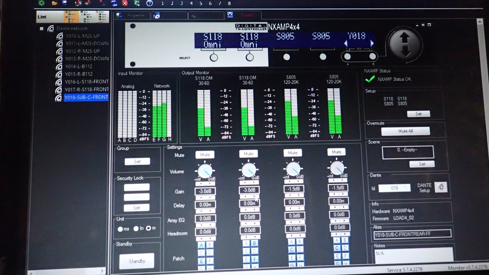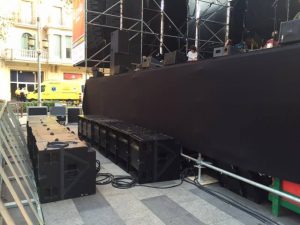 Tot això ho dic a tall d’introducció del que explicaré ara. De coses no tan bones, que deia al començar, n’han passat poques, però haguessin pogut ser molt greus. El dia de muntatge tot va anar bé i vam començar les proves de so després de fer el muntatge a tot tall durant el matí. Vam muntar, del Nexo STM, 24xM28, 8xB112, 16xS118 en gradient i 4xGeo S805 de frontfill, amb el senyal i control d’etapes enllaçat per xarxa amb els dos switchs Luminex que es van comprar no fa gaire per garantir la bona transmissió de l’àudio i l’optimització de la xarxa.