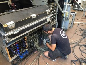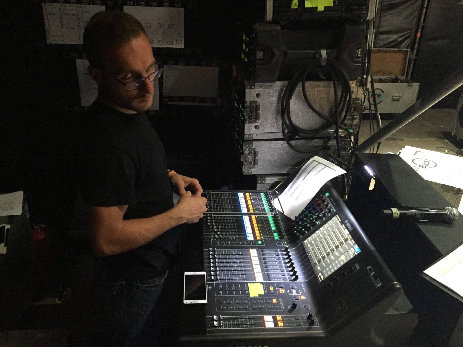 El dia següent vam tenir problemes amb les dues Yamaha CL5, la de PA i la de monitors. Les dues taules no estaven enllaçades, teníem un splitter i cada una anava amb els seus previs. La de monitors no sincronitzava amb un dels RIO (el rack de previs) tot i que el reconeixia. Després de fer tot allò que ja sabem fer per reiniciar el sistema i veure que no funcionava vam acabant trucant a Yamaha i per telèfon ho vam solucionar. Tot i que no tenim la resposta de perquè va passar. I això no m’agrada. Vam acabar fent un reset total de la taula (no l’habitual) i un reset del RIO en qüestió. I finalment es van sincronitzar, però després semblava que hi havia problemes amb alguns phantoms, en alguns canals, i vam decidir posar-los des de la taula de PA. Vam carregar les sessions que havíem guardat a un USB però no com all data. El tècnic de Yamaha em va dir que carregués sessions individuals. I vam seguir amb les proves de so i assajos dels 15 anys.