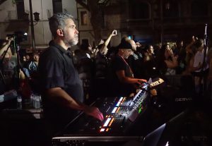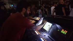 Vaig estar tota l’actuació al costat d’en Jordi i de tant en tant li posava el dit a algun DCA quan sentia que desapareixia el bombo o el baix, que era el més evident, i ell estava per altres coses. Per sort això no passava amb cap veu ni amb la majoria d’instruments. També vam detectar que canals que estaven “mutejats” i amb el fader baixat seguien apareixent per PA.