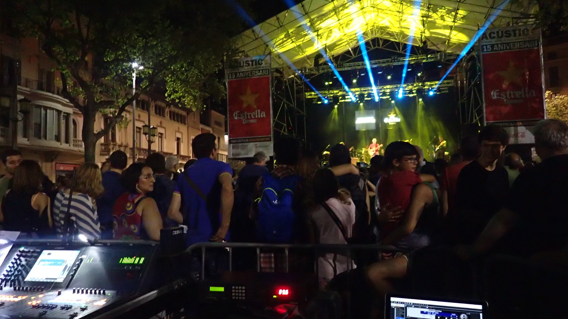 L’endemà vam decidir passar la taula de monitors a PA, posar una CL3 a monitors i tenir una QL de backup pel que pogués ser. Vam anar a Figueres una mica abans del previst per fer aquests canvis, ho vam muntar, ho vam arrencar i tot va anar con una seda. Fins i tot l’equip de so semblava que sonava millor. La nit anterior ens queixàvem de l’espai -la Rambla és un tub- i dels “cubre PAs”, que tornaven reflexions cap a l’escenari afavorint retroalimentació especialment als micros de veus. Tot plegat feia que el so no fos del tot bo, sense ser molt dolent, però no allò que esperàvem. Però amb el canvi de taula vaig percebre que el so havia millorat.