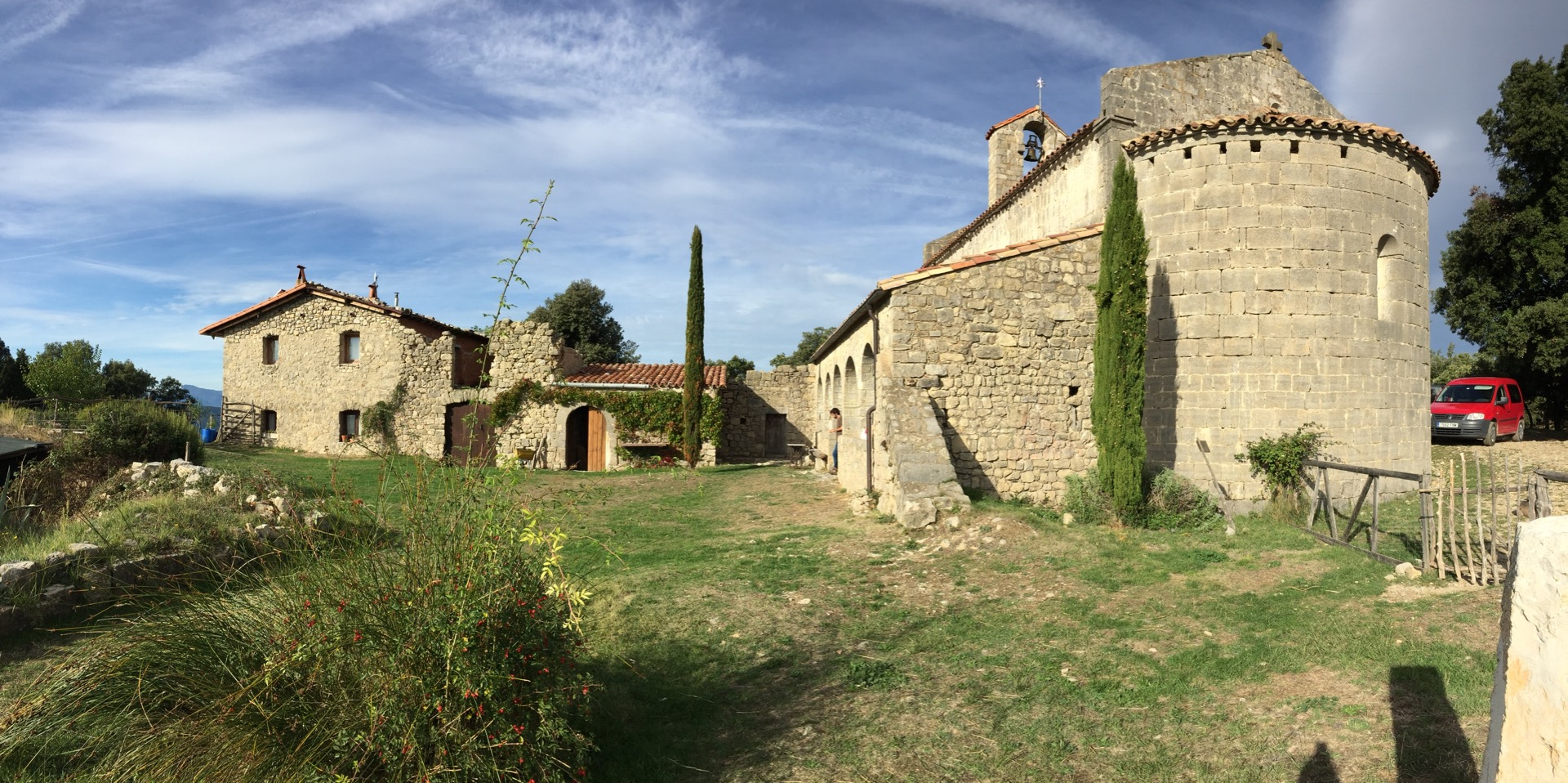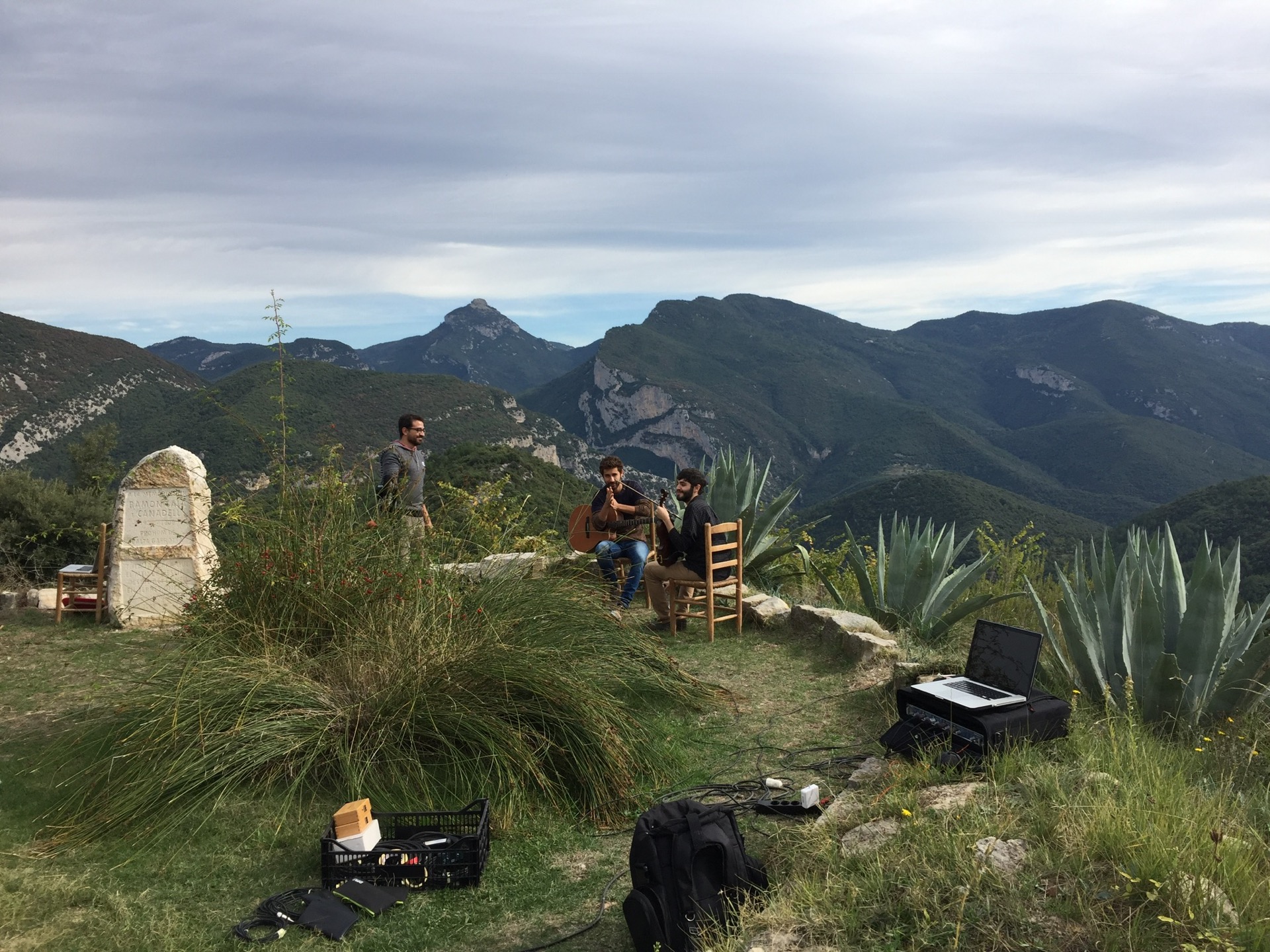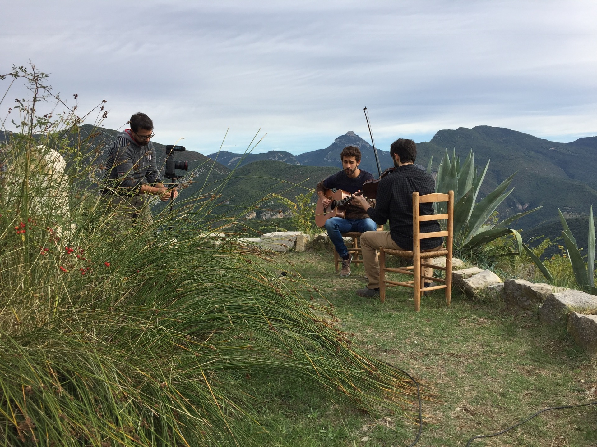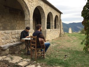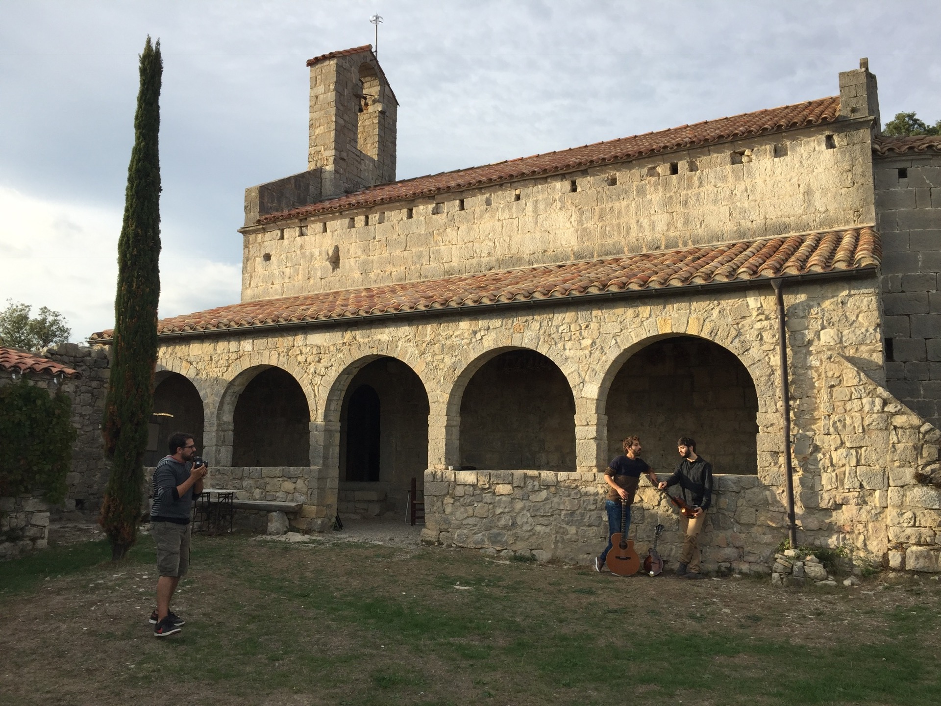 Hi ha trucades que no esperes.  I dies que no has planificat i t’apareixen per davant com qui no vol la cosa i acaben sent molt grans!  Això va passar fa uns dies.  Em va trucar en David Mauricio demanant consell per gravar unes cançons amb l’Apel·les Carod i hi vaig acabar anant jo.  La trucada va ser uns pocs dies abans de fer-ho, el diumenge  16 d’octubre.  El lloc, màgic i reducte de pau i connexió amb la natura, l’ermita de Santa Bàrbara de Pruneres. En Pau Requesens s’ocupava del vídeo, i en Jordi ens acollia a casa seva i ens feia el dinar.  L’objectiu era fer material promocional del duet que formen en David i l’Apel·les.