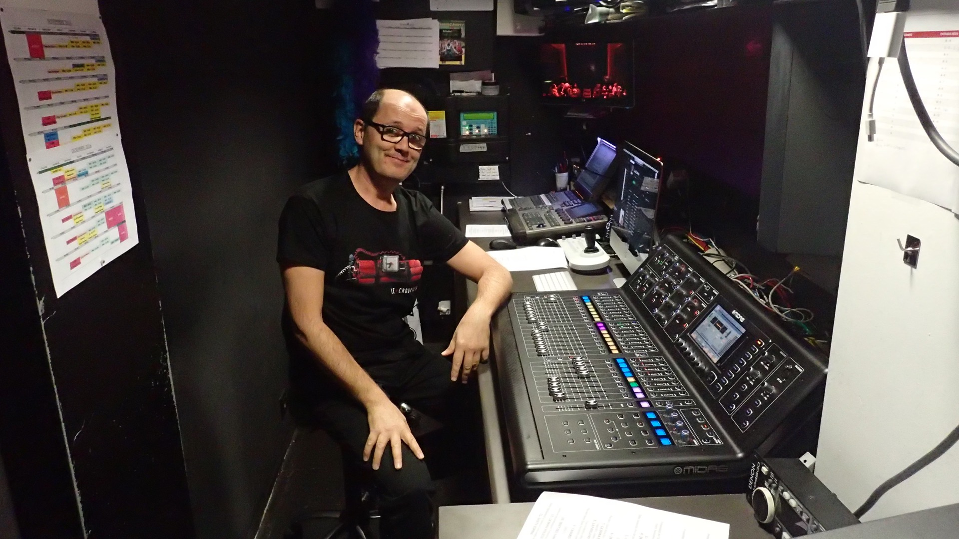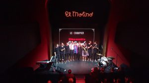 Primer dels tres diumenges de funció-vermut al mític Molino del Paral·lel de Barcelona. És una bombonera aquest local. L’equip tècnic de Le Croupier hi vam anar per traspassar el show a l’equip tècnic del Molino, ja que els altres diumenges van ser ells els que van “tirar funció”. De fet el primer dia ja van estar contribuint a fer-ho. Aquest equip tècnic el formen en Néstor (so), en Luís (il·luminació) i en Vicenç (regidor). Quins encants de persones, ha estat un plaer treballar amb ells! I si a sobre hi afegeixes a la Merche Mar com a mestressa de cerimònies la cosa s’enfila amunt! Moltes gràcies a tots!