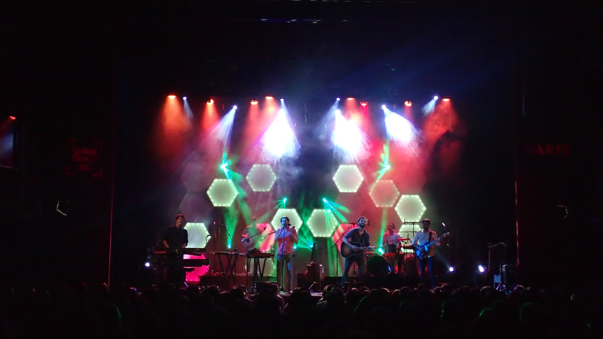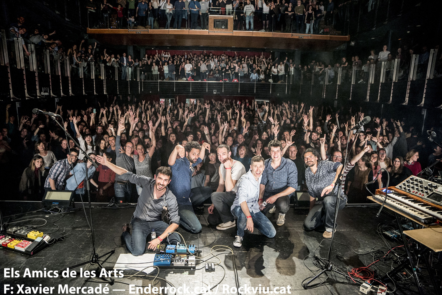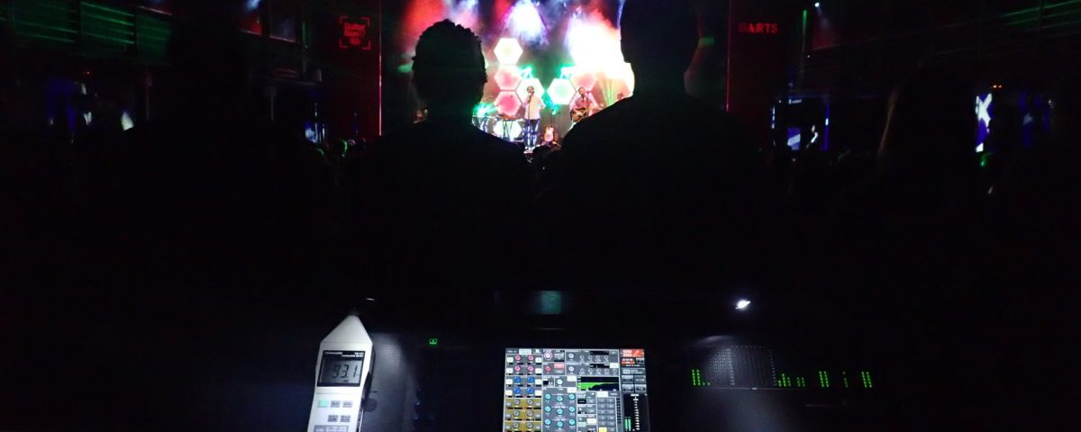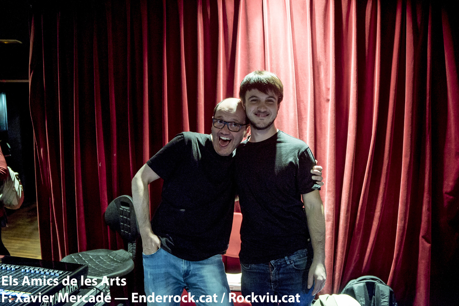 A la segona nit, com a la primera, el públic no passa més d’una cançó assegut a les butaques. Un cop s’aixequen a mi ja se “m’acaba” el bolo “normal” i comença un altre bolo. El de mesclar amb la gent que impedeix que els altaveus m’entreguin el so a control, mal situat -per necessitat, no hi ha un altre espai-, al final de la platea i sota balconada. Mesclar de tant en tant amb els auriculars ajuda a equilibrar els nivells. Treure el cap fora del control en moments que saps la mescla t’ho permet esdevé una necessitat. Limitació a 95dB a control. Sóc respectuós la major part del temps. De tant en tant l’actuació requereix pujar una mica el nivell, per recuperar-lo més endavant. Llevat del final. Hem d’acabar amunt!