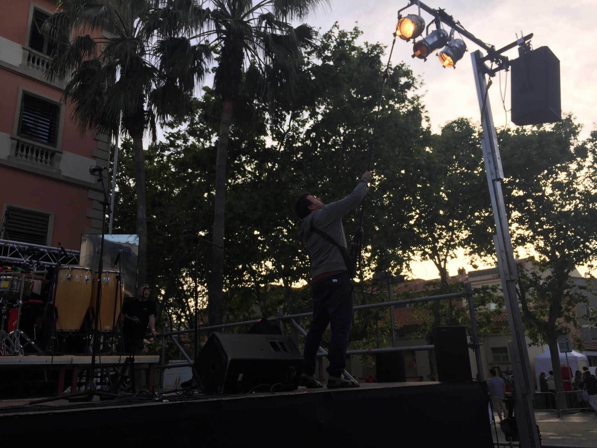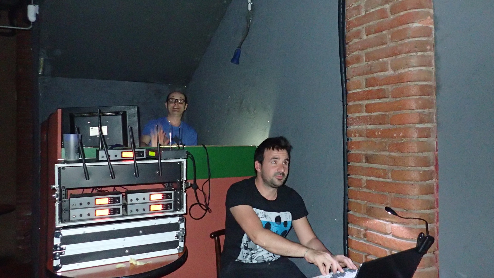 Avui no hi havia un assistent pròpiament dit, tots els tècnics habituals de la sala estaven ocupats en d’altres coses i com que hi anava jo doncs… paraules d’en Pitu de Lo Submarino. Sí home sí, cap problema, endavant! Ha ha ha! Gràcies per la feina a la persona de la que no recordo el nom -quin desastre que estic fet- que es va ocupar de fer l’escenari. I gràcies a algun tutorial de YouTube sobre alguna cosa que no trobava de la X32. Entre tots vam fer un gran equip!